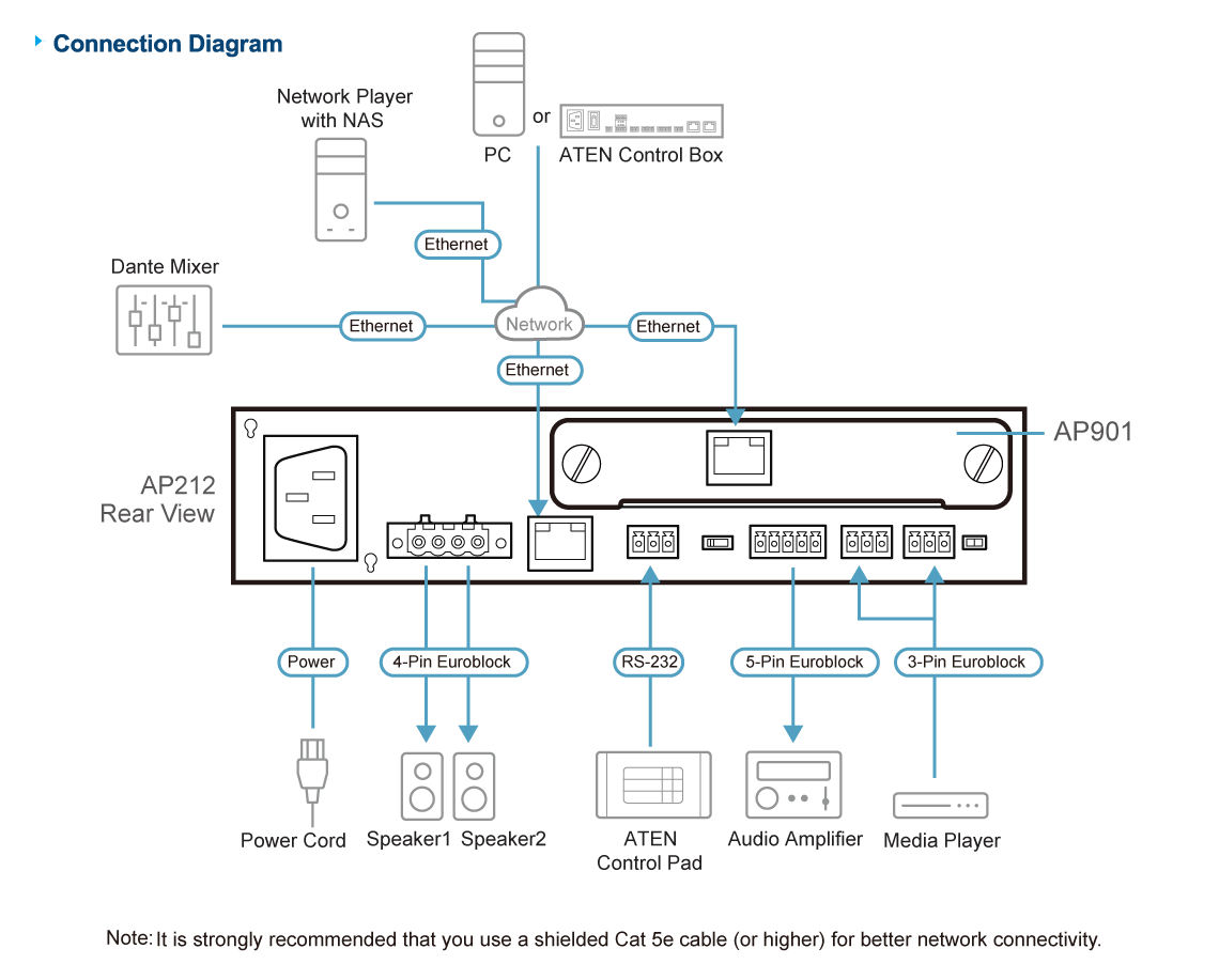 - Dedicated for use with ATEN’s AP DSP Power Amplifier series