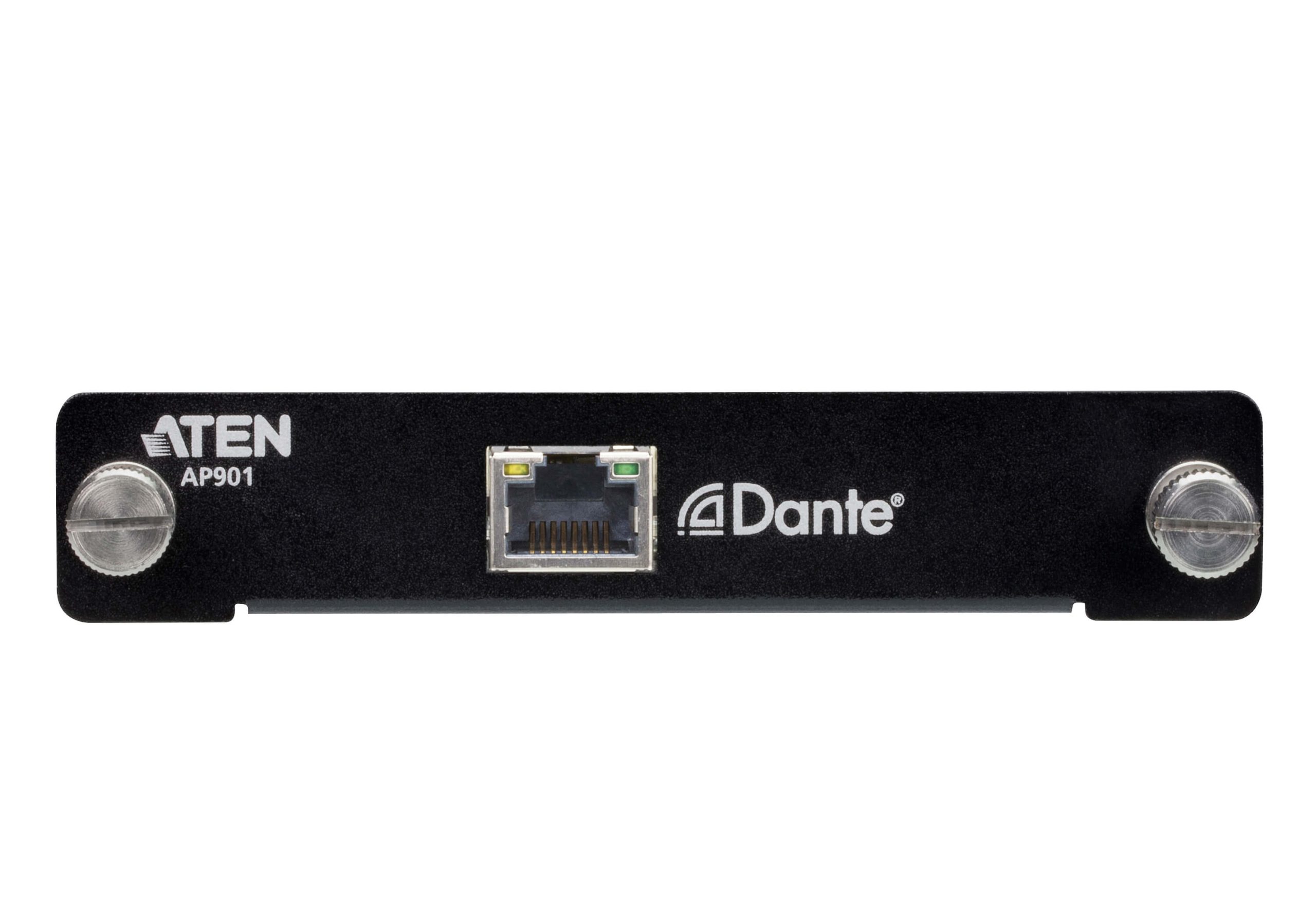 The installation into the AP power amplifiers’ expansion slot is easy. With all the Danteenabled devices being manageable and configurable fully through the Dante Controller software, the utilization of AP901 helps further enhance flexibility and streamline workflows in any Dante network infrastructure including broadcasting, recording, and other professional audio distribution scenarios. Furthermore, with just one Ethernet cable and some simple mouse clicks, ATEN’s Dante networking technology eliminates the need for traditional analog cables, expanding Dante network coverage and distributing AV signals across multiple locations at once.