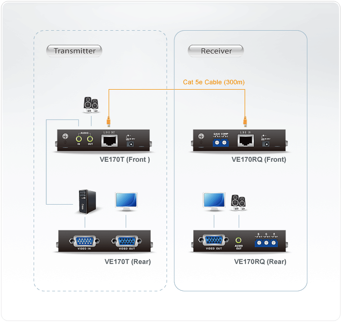 - 1x VE172R A/V Over Cat 5 Receiver with Cascade