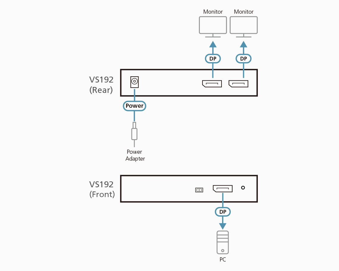 - 1x VS192 2-port True 4K DisplayPort Splitter