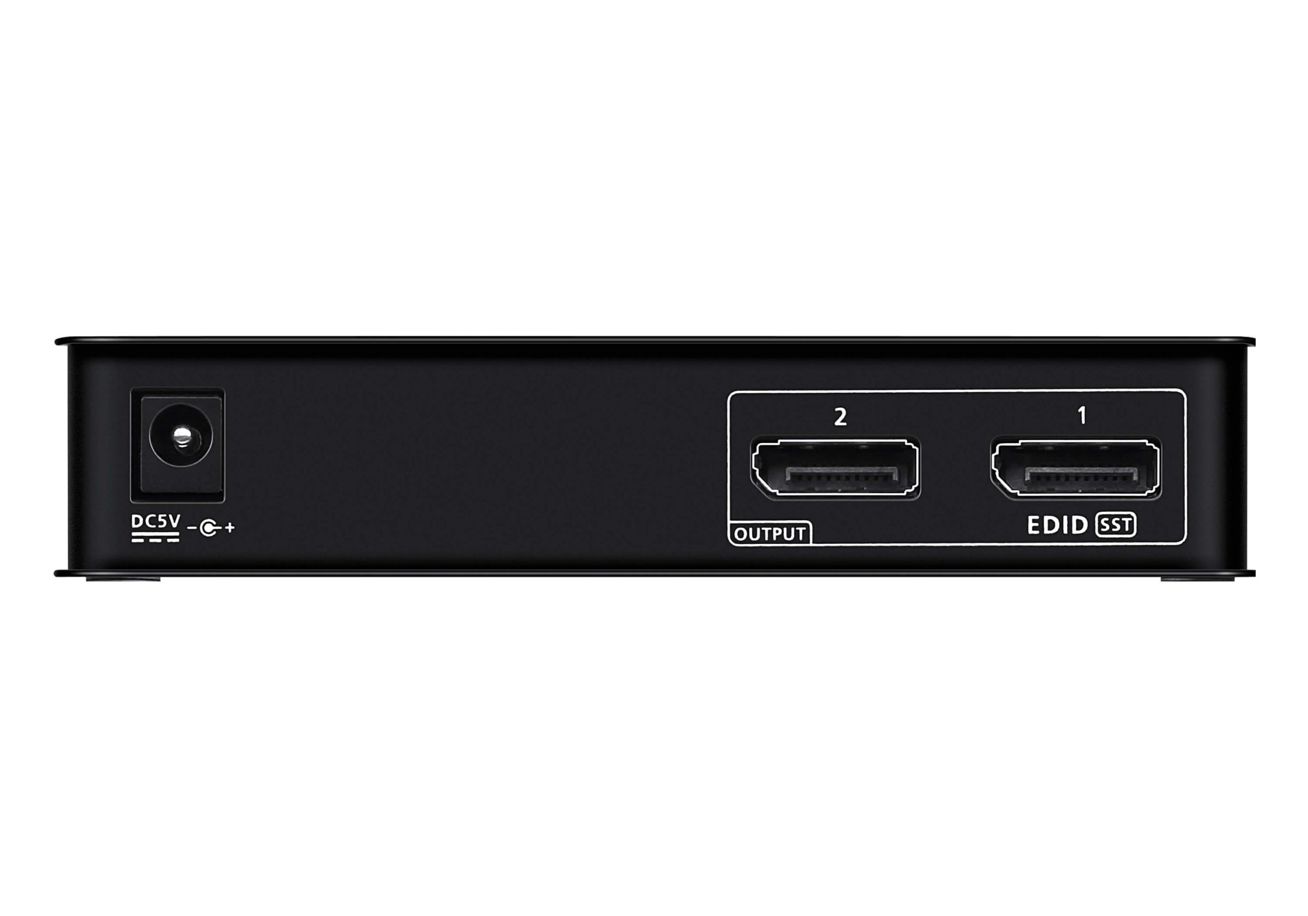 - Connects 1 DisplayPort source to 2 DisplayPort monitors