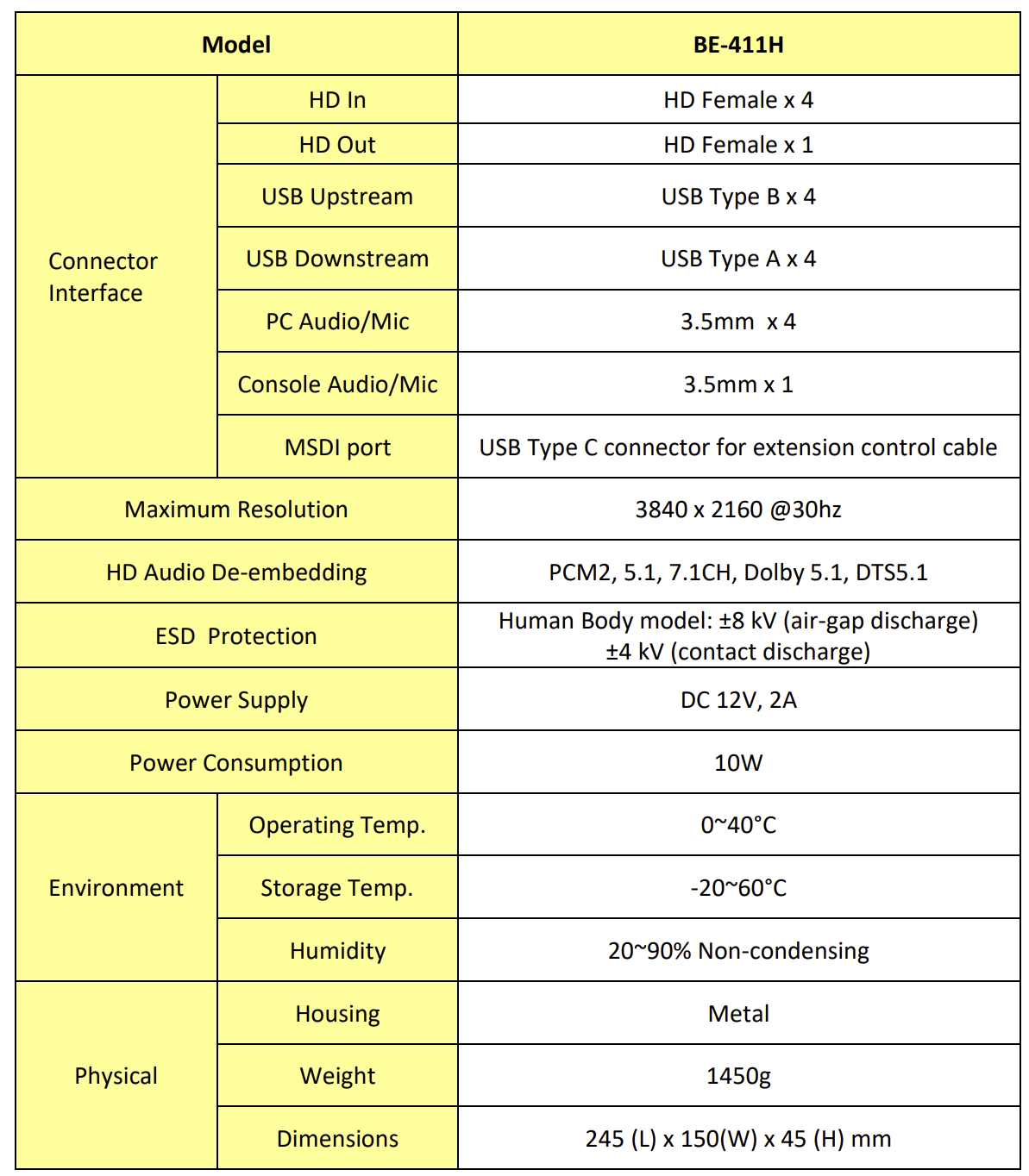 Compact and easy to set up, the BE-411H is an excellent solution for environments where real-time multi-system control is essential, such as security control rooms, IT operations centers, broadcasting studios, and video editing workstations. With plug-and-play functionality and no software installation required, it ensures a hassle-free experience. Whether you’re managing servers, workstations, or media systems, the BE-411H provides a smart, space-saving solution that enhances productivity and system accessibility.